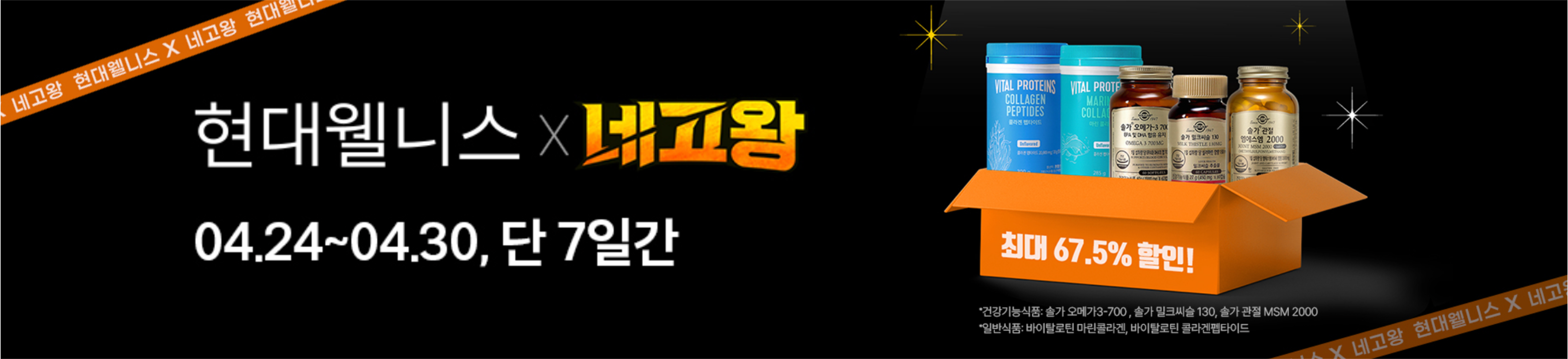- 할인 품목: 오메가-3 700, 마그네슘 위드 비타민B6, 칼슘 위드 비타민D3, MSM 2000, 밀크씨슬 130, 비오틴 1000, 콜라겐 펩타이드 300g, 마린 콜라겐 285g 등