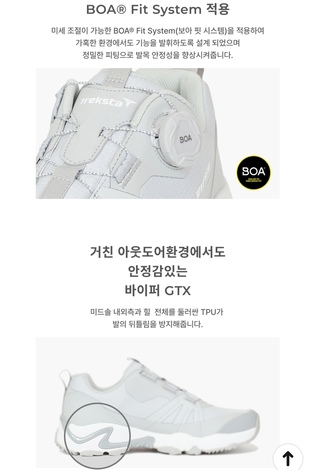 ✅ 네고왕 트렉스타의 첫 번째 품목은 세계 최초 휠 기술력으로 알려진 코브라 바이퍼입니다! 블랙, 네이비, 베이지, 그레이 4가지 색상으로 구성되어 있고, 둘레길부터 뒷산까지 커버하는 고어텍스 트레킹화라고 하네요!