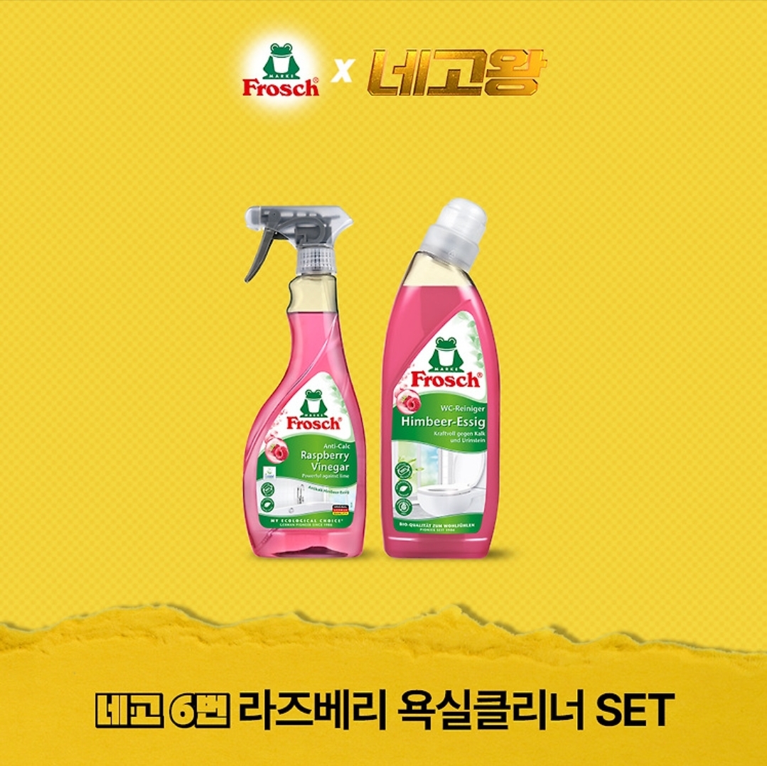 ✅ 마지막 네고 제품입니다! 라즈베리 물때 제거 욕실클리너 세트인데요. 물때 전용과 변기 전용 두 가지 타입으로 각각 500ml, 750ml로 구성되어 있습니다. 프로쉬 대표님께서는 샤워하면서 욕실 청소를 할 정도로 냄새나 유해한 성분이 전혀 없는, 그러나 세정력은 탁월한 제품이라고 하는데요.