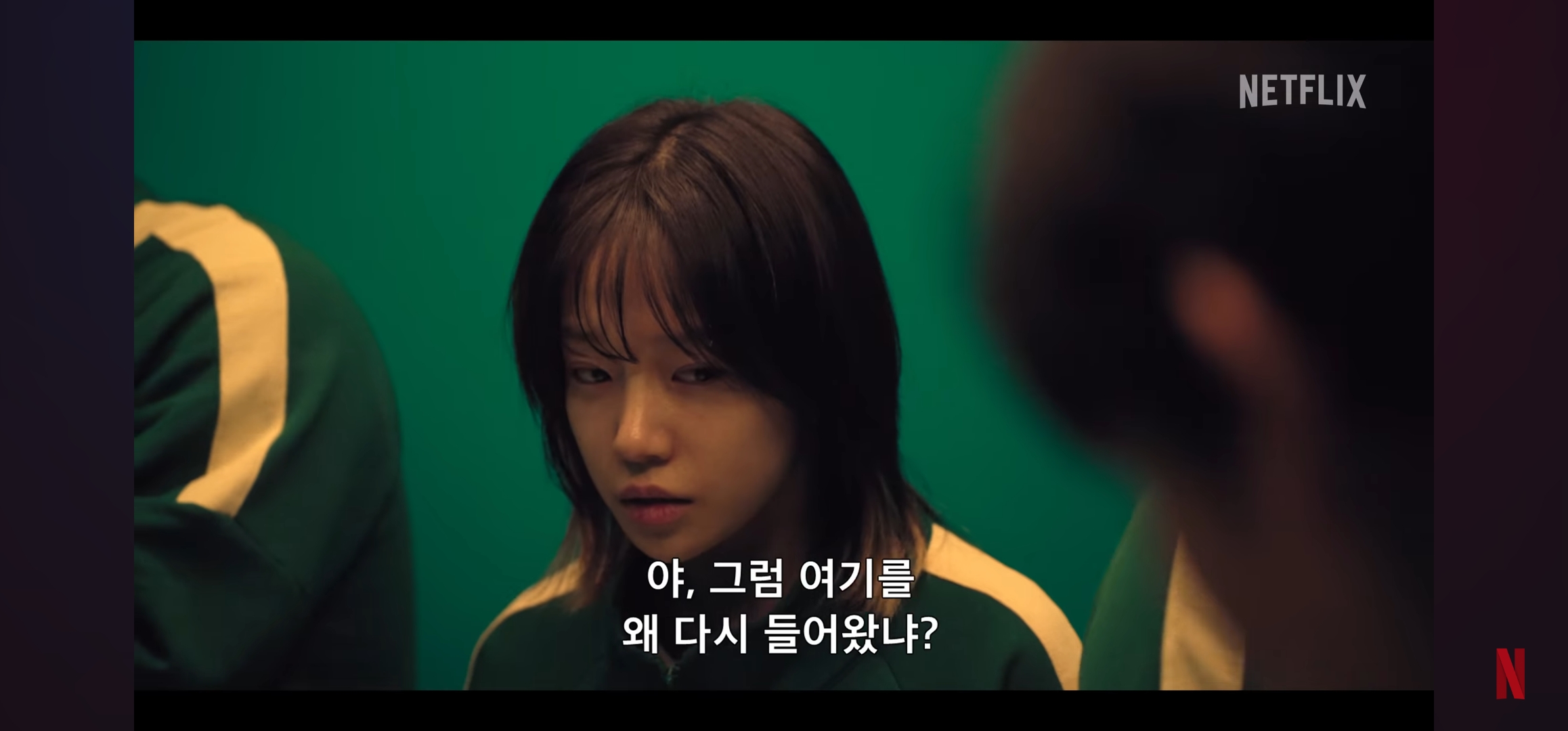 마지막으로 군인 출신의 탈북인 노을 역의 배우 박규영입니다. 북에 갓난아이를 두고 와 아이를 찾기 위해 삶을 살아가는 노을은 이를 위해 어떤 일도 할 각오가 되어 있는 듯한데요. 아이를 찾는 일 외의 삶의 의지는 없어 보입니다. 특이한 점은 선공개 영상에서 배우 박규영이 초록색 트레이닝 복인 참가복을 입은 장면이 드러나지 않았다는 점인데요. 이를 통해 그가 오징어 게임 시즌 2의 참가자가 아닌 주최측의 요원이나 다른 역할을 소화했음을 알 수 있습니다.