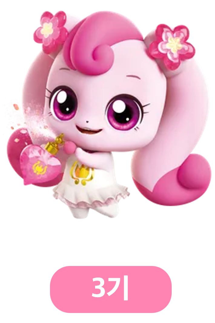 3기에는 시리즈 앞에 "알쏭달쏭"이라는 말이 붙으면서 아래의 캐릭터들이 추가됩니다~ 알쏭달쏭 캐치! 티니핑을 만나보세요!
