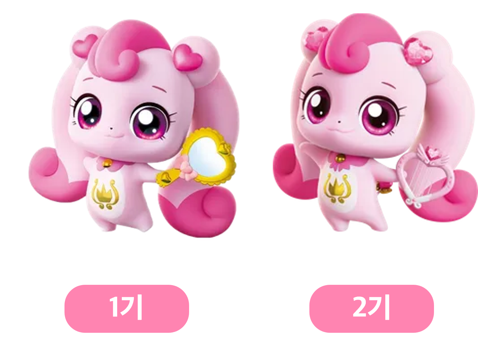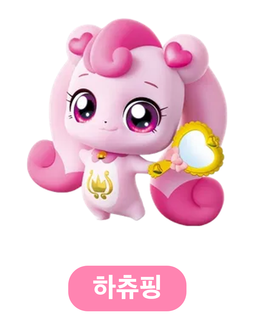 각각의 티니핑 캐릭터를 소개하기 앞서 캐치! 티니핑에서는 주인공 인물 캐릭터보다 더 유명한 핑이 있죠! 바로 하츄핑입니다. 티니핑의 기수에 따라 하츄핑의 모습도 변화하고 있습니다. 손거울, 하프, 향수, 핸드벨, 그리고 별가루까지 다양한 소품을 활용해서 표현되고 있고, 그 밖에 머리 핀의 모양에도 변화가 있죠? 💖