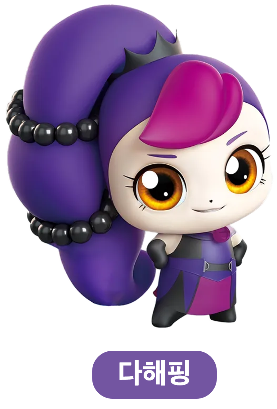 로열, 레전드 티니핑들과 다르게 악역을 맡은 빌런 티니핑들도 있습니다! 1기부터 4기까지 등장하였고, 극장판인 사랑의 하츄핑에도 한 명의 빌런 티니핑이 나옵니다! 빌런 티니핑은 극장판을 제외하고는 눈밑에 역삼각형 무늬의 표식이 있는 게 특징이네요 🤔