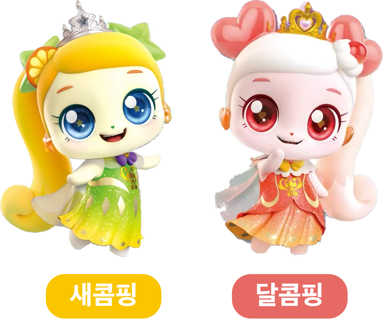 한번 몸풀기로 맞춰 볼까요? 왼쪽부터 5기 슈팅스타 캐치! 티니핑 속 로열 티니핑으로 활약했던 빤짝핑, 초롱핑, 빛나핑이네요 ✨ 역시 5기인만큼 화려한 악세사리와 화장이 눈에 띕니다 👀