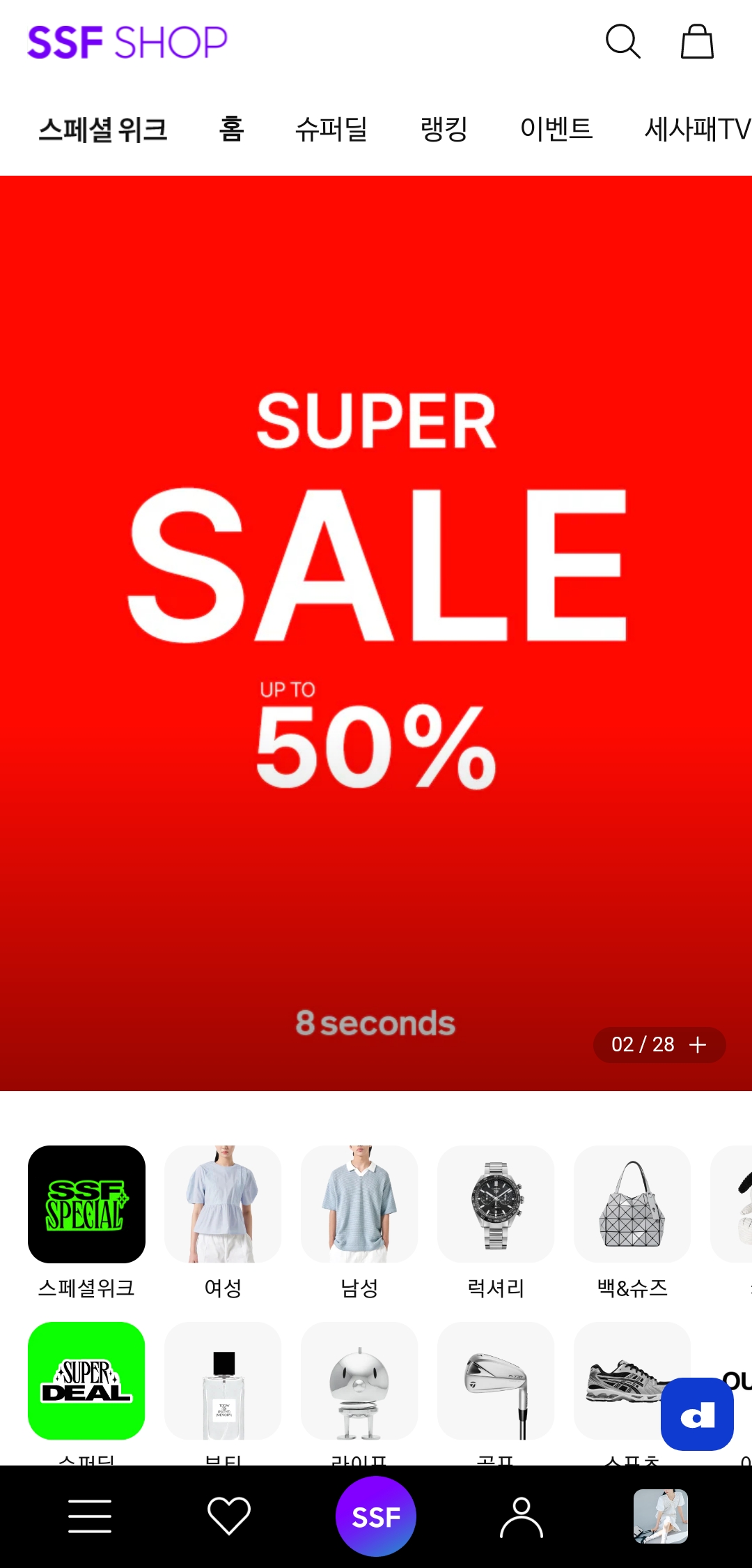 이밖에도 구글플레이스토어나 앱스토어에서 SSF SHOP을 검색하여 다운로드 받아 보세요. 전면에서 바로 할인 행사를 확인하실 수 있습니다.